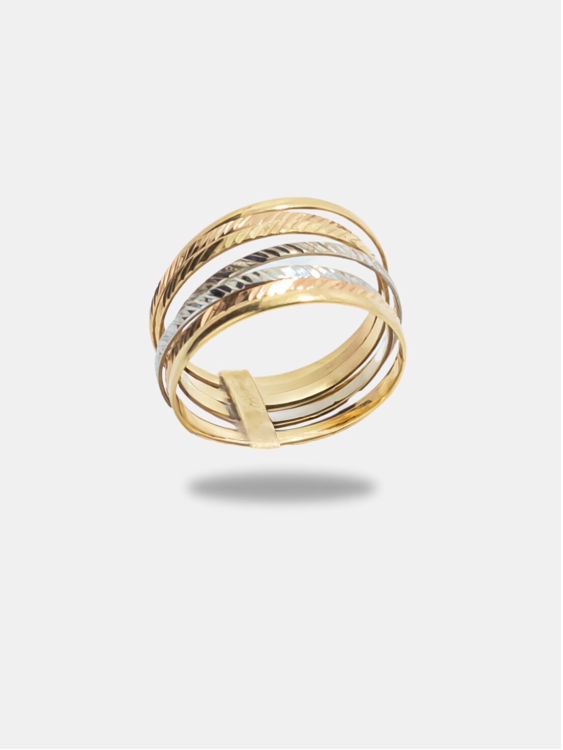 Descrição: Anel ouro 18k modelo 7 em 1 três ouros