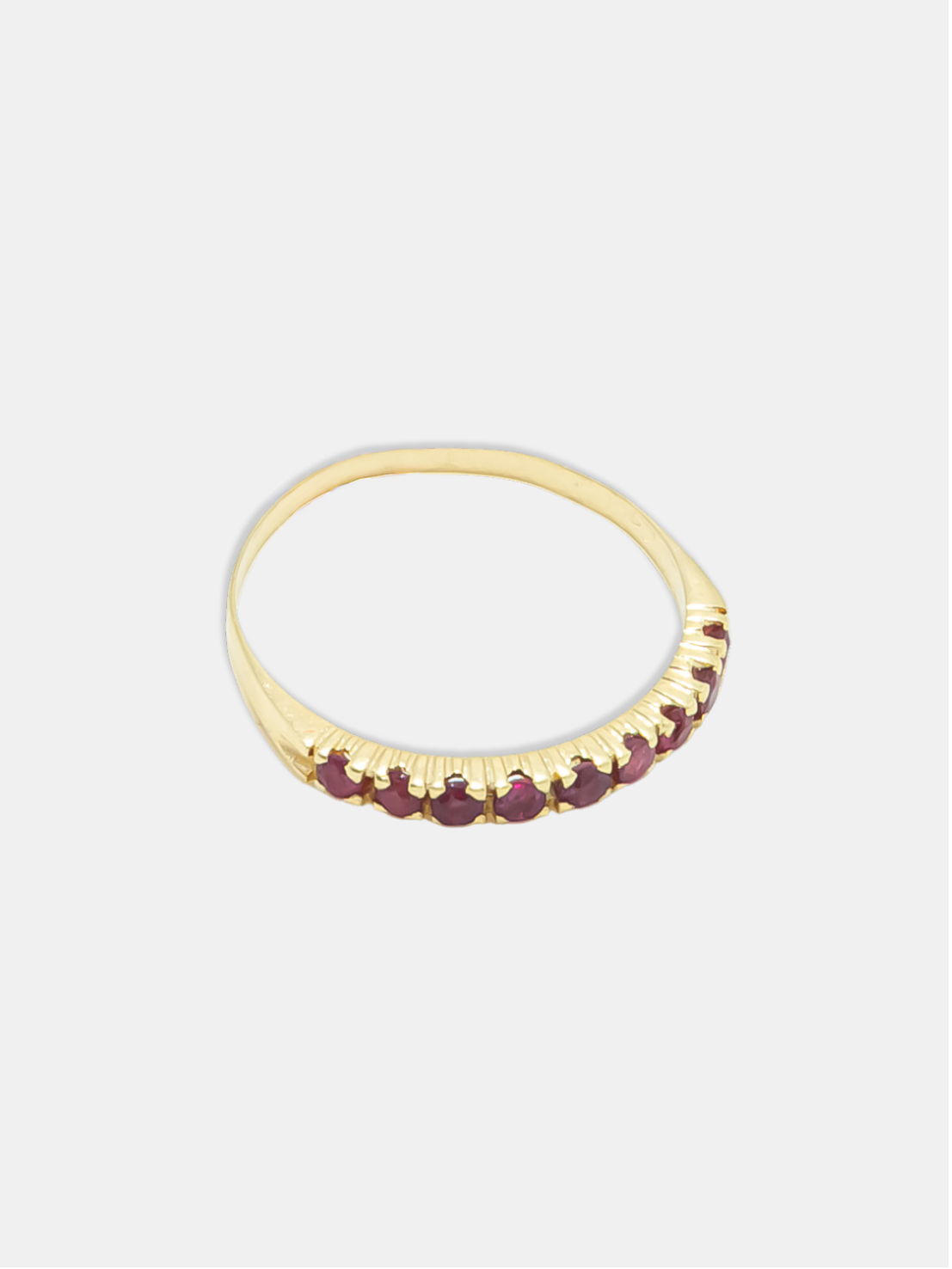 Anel confeccionado em ouro 18k amarelo, com cravação de pedras rosas que proporcionam brilho suave e elegante à joia. O acabamento polido valoriza o contraste entre o ouro e as pedras, criando um visual delicado e feminino. Uma peça atemporal, ideal para quem busca elegância discreta com um toque de cor e luminosidade.
