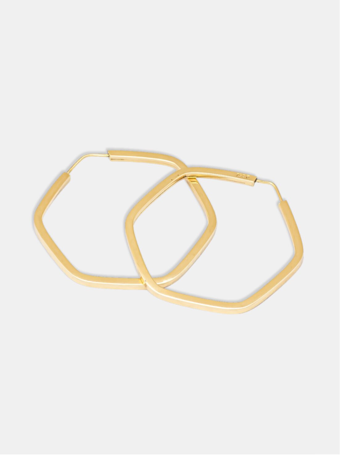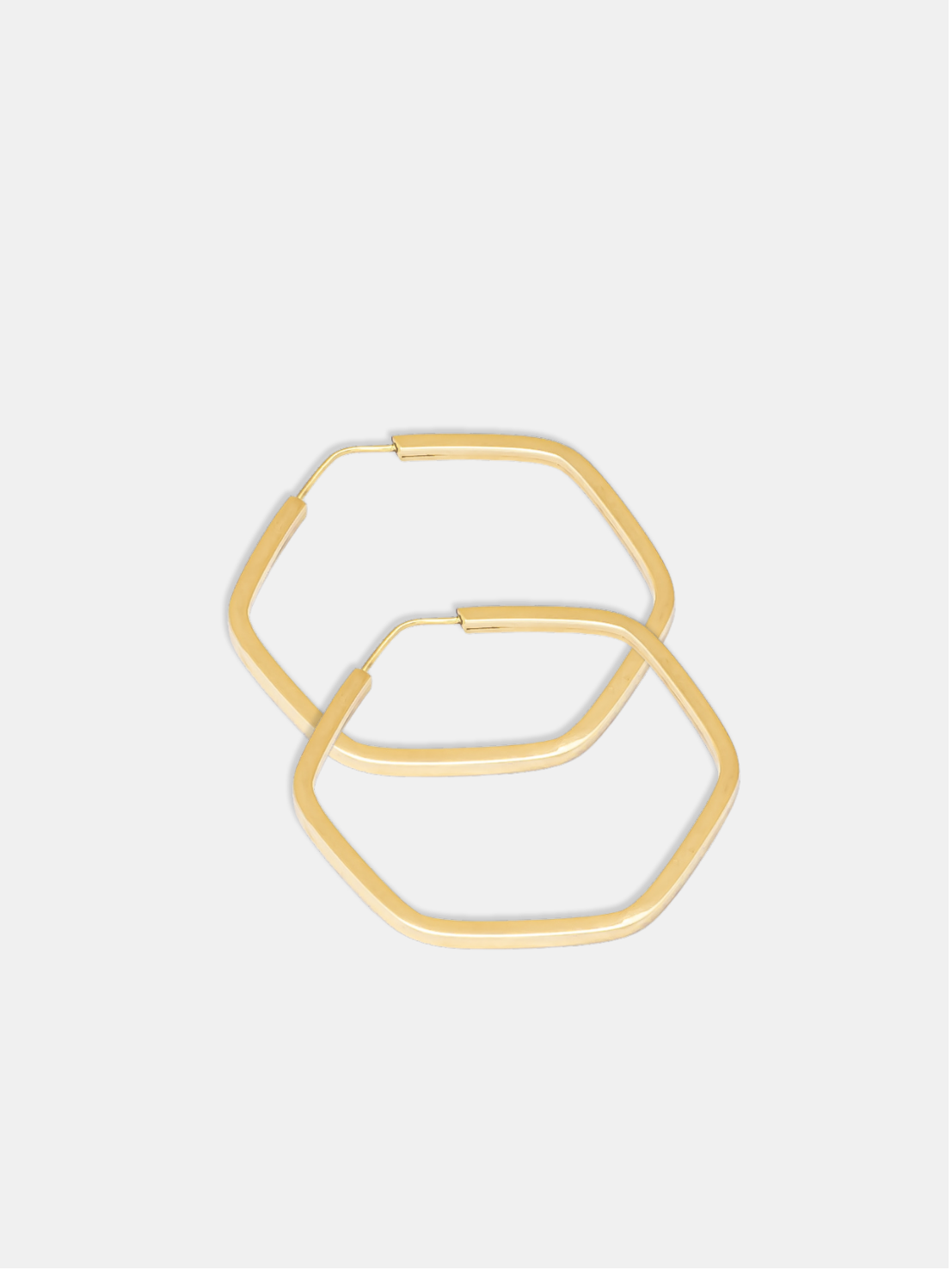 Este brinco em ouro 18k apresenta formato de argola hexagonal, com linhas geométricas bem definidas que criam um visual moderno e elegante. O acabamento polido valoriza o brilho do ouro e reforça a estética limpa da peça. Seu comprimento alongado proporciona destaque no lóbulo, mantendo equilíbrio entre imponência e sofisticação. O sistema de encaixe garante praticidade e segurança no uso, tornando o brinco indicado para quem busca uma joia de presença, versátil para produções contemporâneas e elegantes.