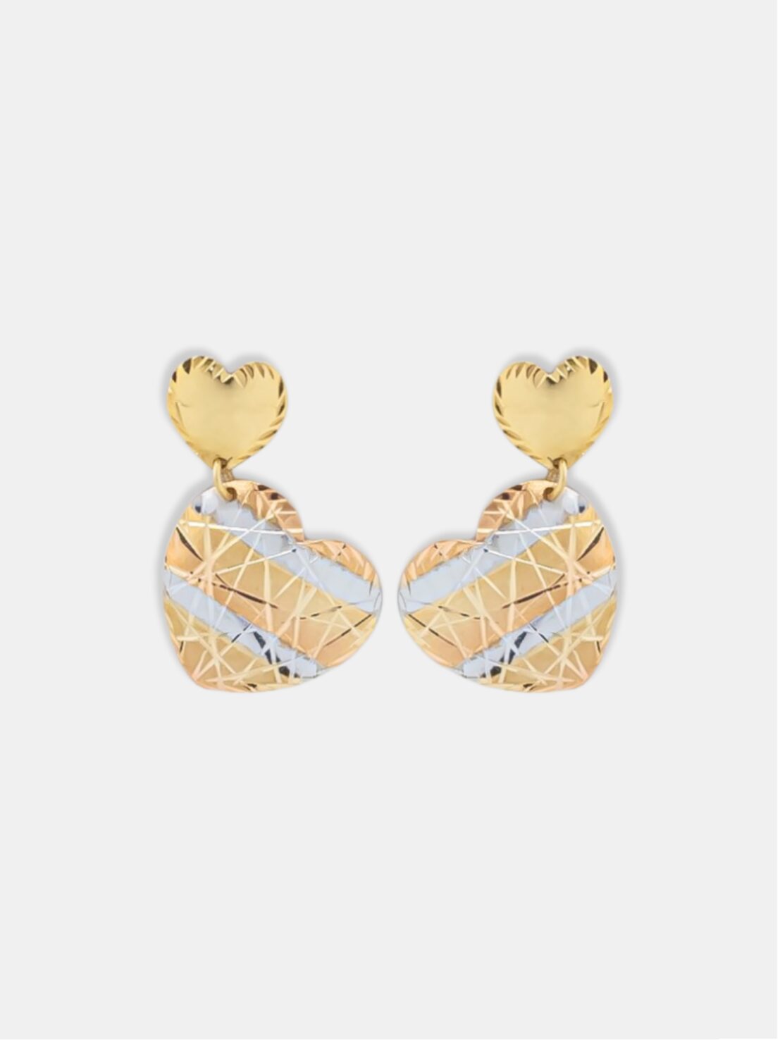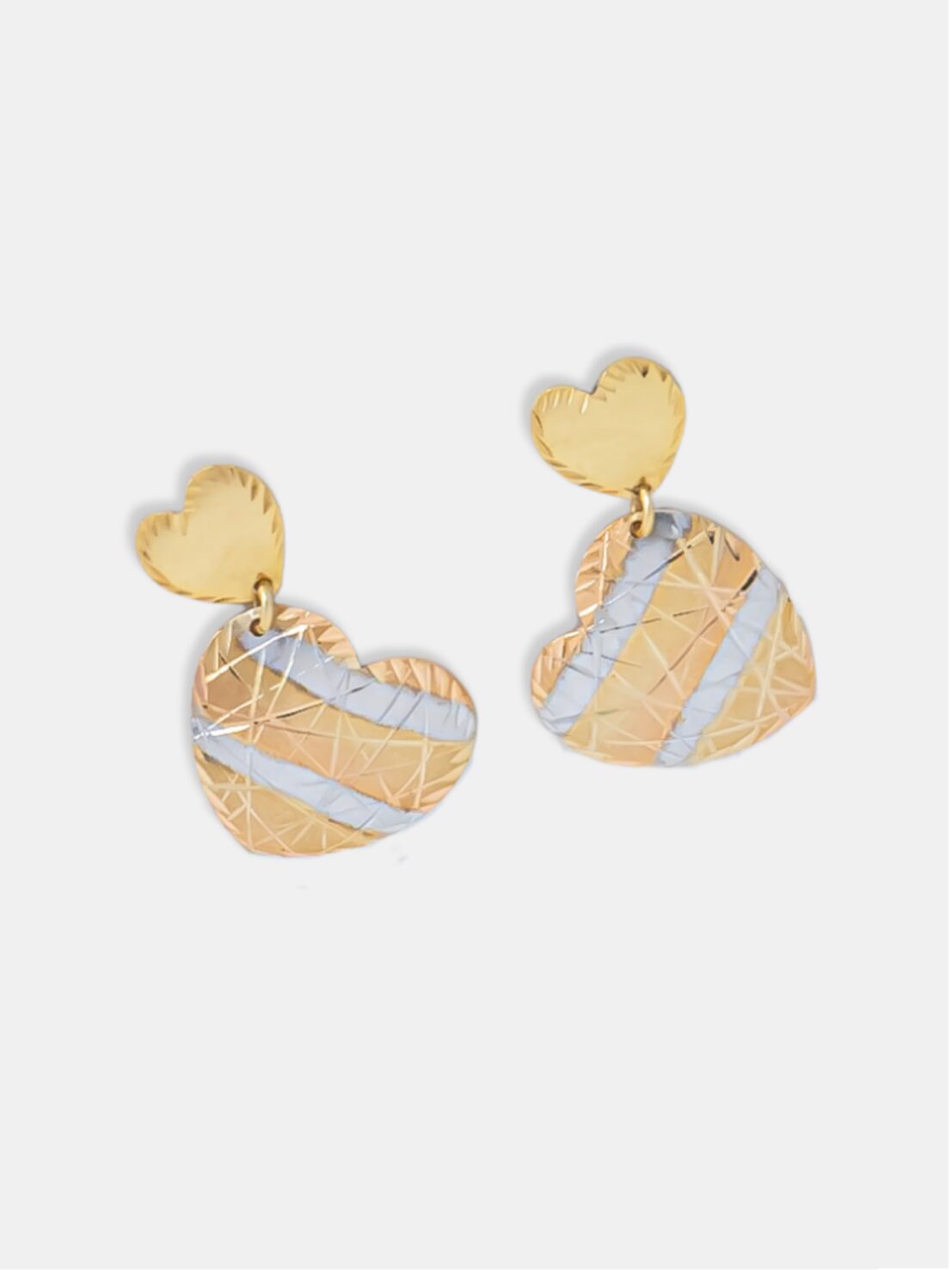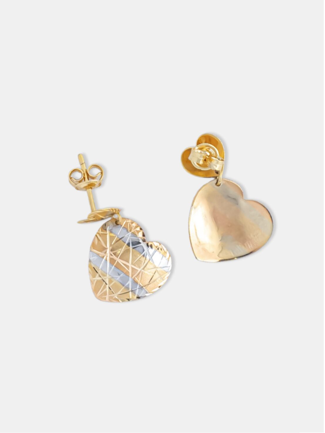 Este brinco em ouro 18k apresenta dois corações interligados por linhas articuladas, combinando ouro amarelo, branco e rosé em um design equilibrado e expressivo. O acabamento mescla superfícies polidas, foscas e detalhes esculpidos, criando contraste visual e sofisticação. A articulação proporciona leve movimento à peça, tornando o uso mais elegante e confortável. Um modelo pensado para quem busca joias com presença delicada e acabamento refinado, ideal para compor produções adultas com significado e estilo.