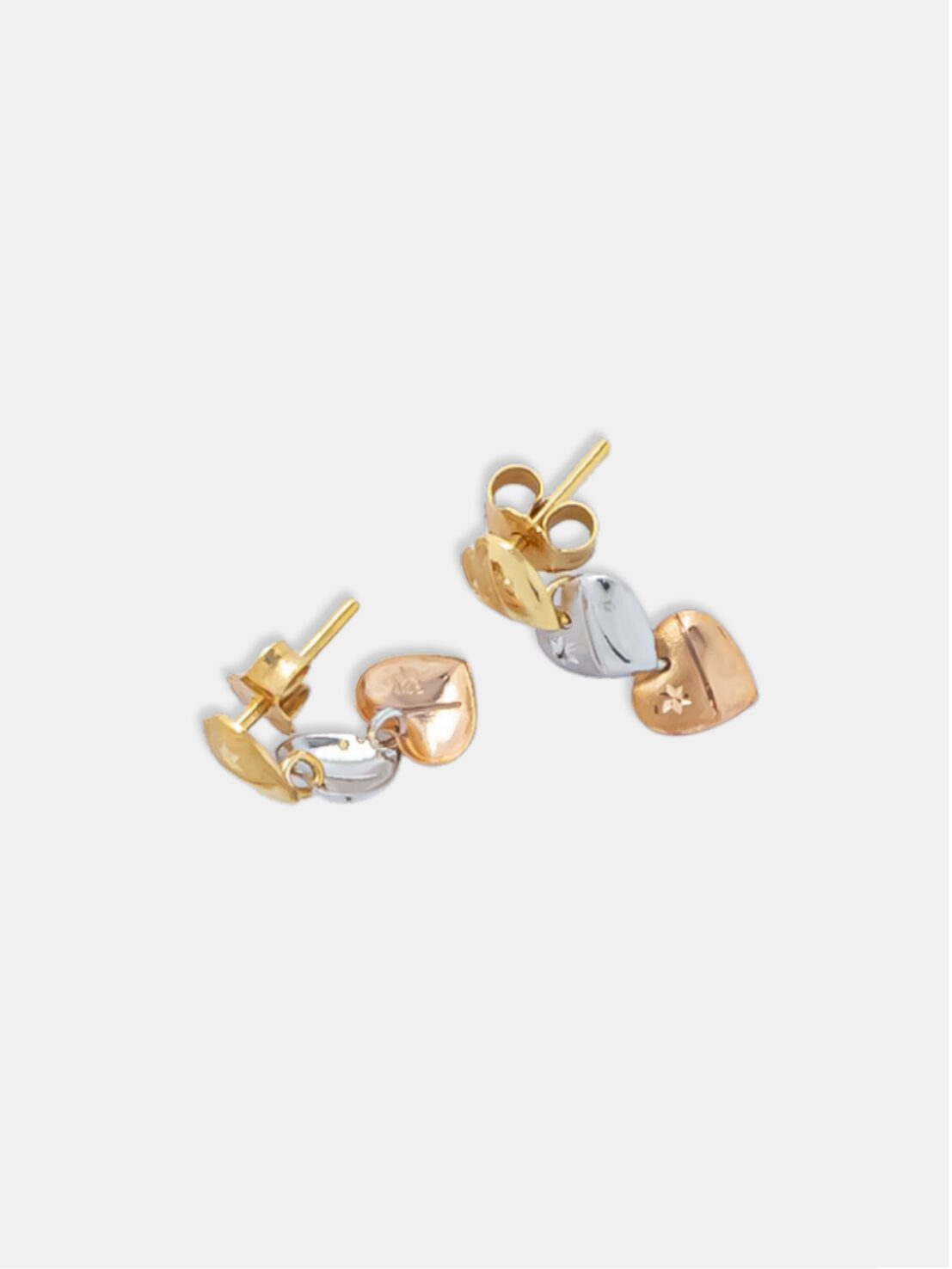 Este brinco em ouro 18k apresenta três corações articulados em uma composição harmoniosa de três ouros: amarelo, branco e rosé. O design articulado proporciona leve movimento à peça, criando um efeito visual elegante e dinâmico. Uma joia sofisticada, ideal para quem busca presença sem excessos, perfeita para ocasiões especiais ou para elevar produções do dia a dia.