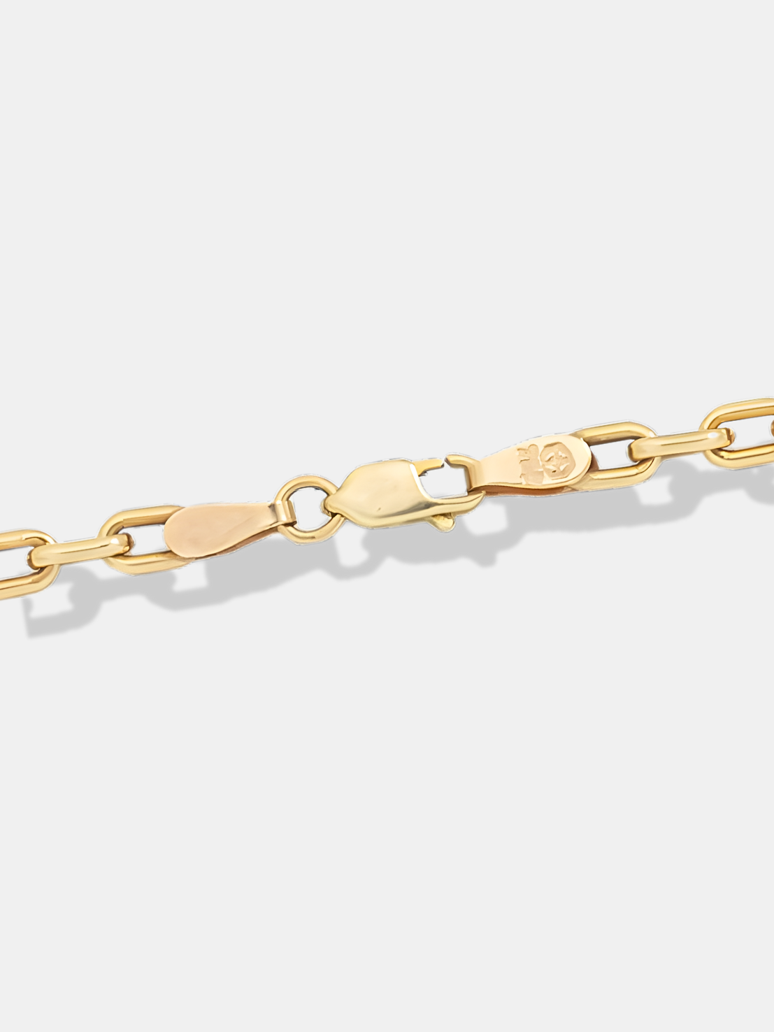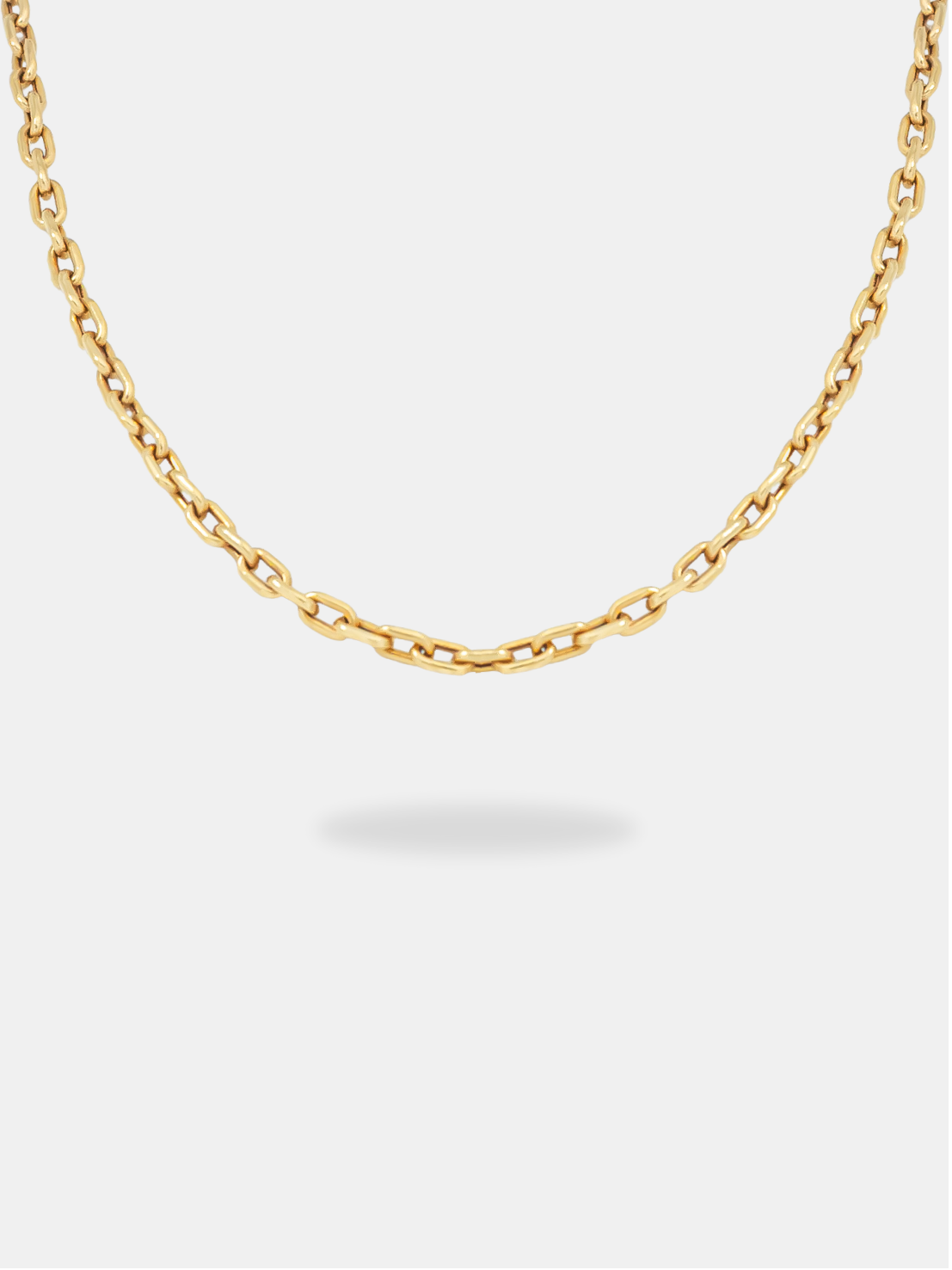 Corrente em ouro 18k com elo cadeado, desenvolvida para oferecer presença visual marcante sem comprometer o conforto. O acabamento polido realça o brilho do ouro amarelo, enquanto o fecho tipo lagosta garante firmeza e praticidade no fechamento. Uma peça versátil, indicada para quem busca uma corrente de impacto moderado, adequada para uso diário ou com pingentes de médio porte.