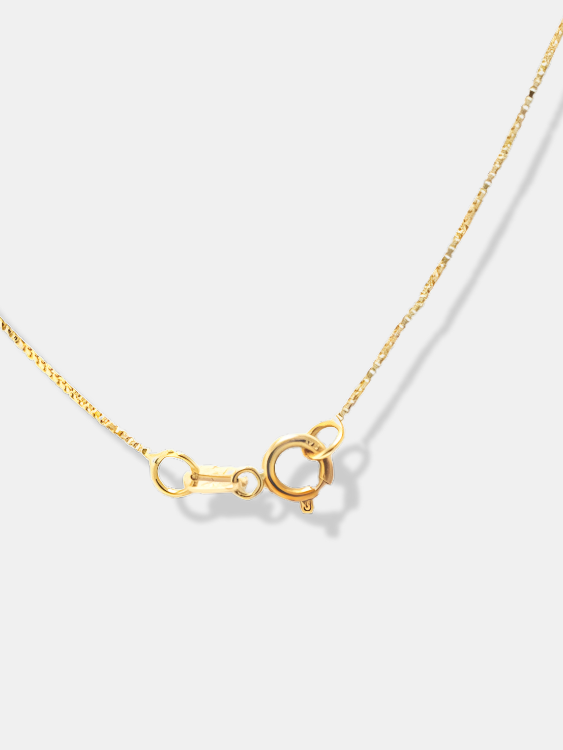 Corrente em ouro 18k modelo veneziana fina, com escapulário delicado integrado à peça. O elo fino de 0,5 mm oferece leveza, conforto e elegância, ideal para quem busca uma joia discreta, simbólica e atemporal. O escapulário carrega forte significado de proteção, fé e espiritualidade, sendo uma escolha clássica tanto para uso diário quanto para presentear. Acabamento polido que valoriza o brilho do ouro amarelo e garante sofisticação em qualquer ocasião.