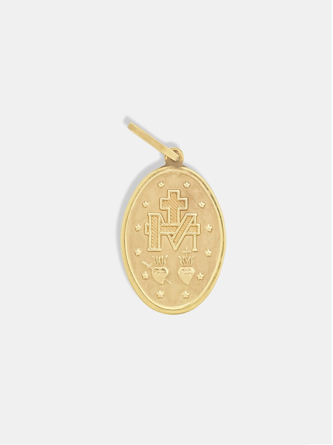 O pingente medalha Nossa Senhora das Graças em ouro 18k é uma joia tradicional carregada de devoção e significado espiritual. Seu acabamento fosco confere um visual sóbrio e refinado, valorizando o ouro amarelo de forma elegante. Uma peça atemporal, perfeita para uso diário ou como símbolo de proteção, fé e gratidão.